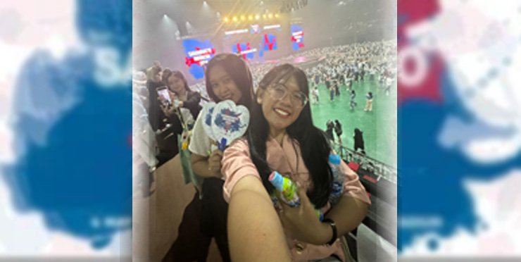 Dibalik tirai putih, kehadiran mereka disambut dengan sorak-sorai meriah dari penggemar setia, ‘My Day’.