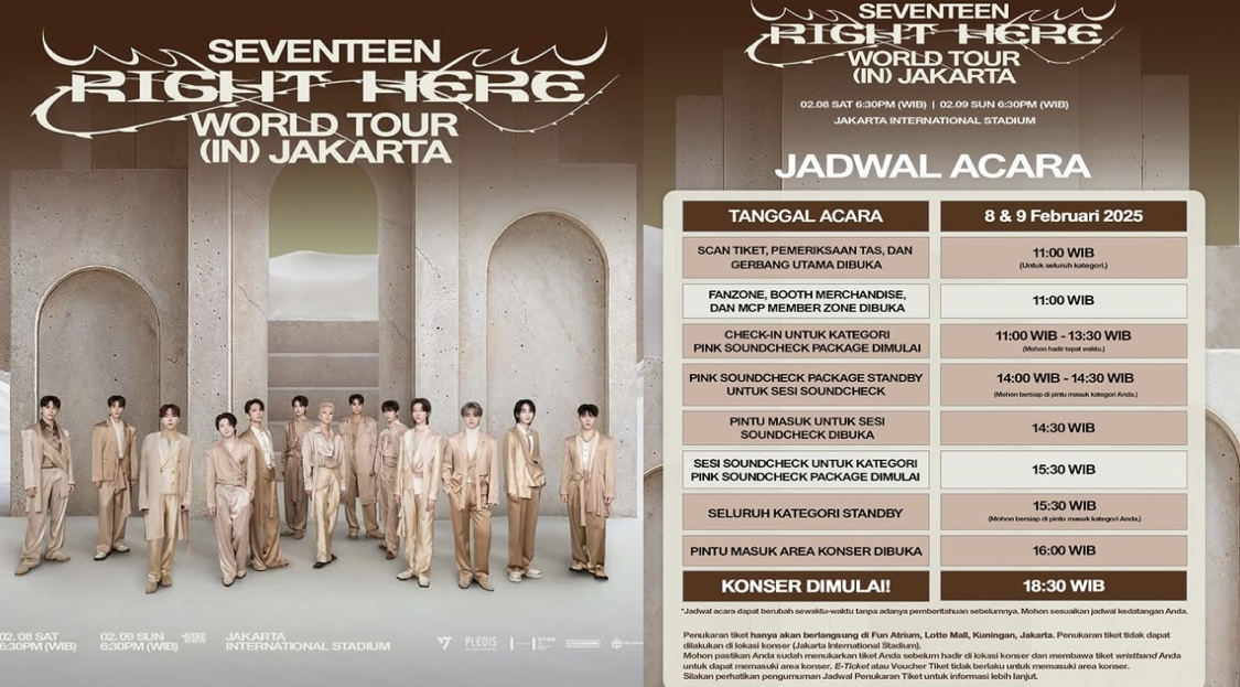 [BANTENESIA.NET] – Tinggal menghitung hari menuju konser SEVENTEEN bertajuk ‘RIGHT HERE’ yang akan digelar 8-9 Februari 2025 di Jakarta International Stadium (JIS), Jakarta Utara.