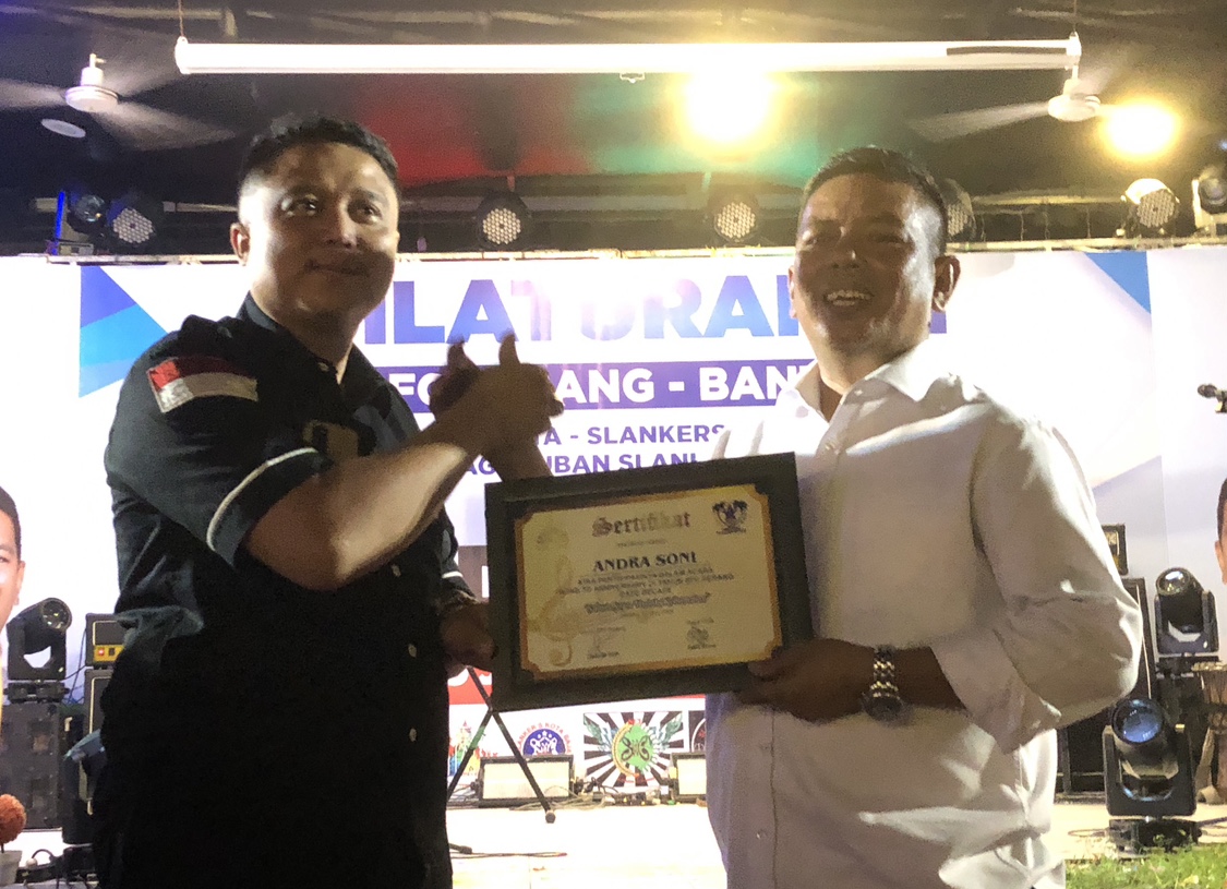Ketua Slankers Serang Raya, Endang, dan Ketua Paguyuban Slankers Banten, Iwan, menyampaikan apresiasi kepada Andra Soni atas kesediaannya untuk bersilaturahmi di tengah kesibukannya.